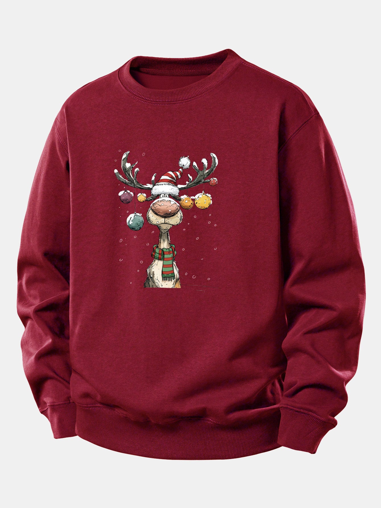 Brighten up your holiday wardrobe with this charming Christmas light reindeer print relax fit sweatshirt. Featuring an adorable reindeer wrapped in colorful Christmas lights, this festive design brings warmth, joy, and playful holiday spirit to any casual outfit.
