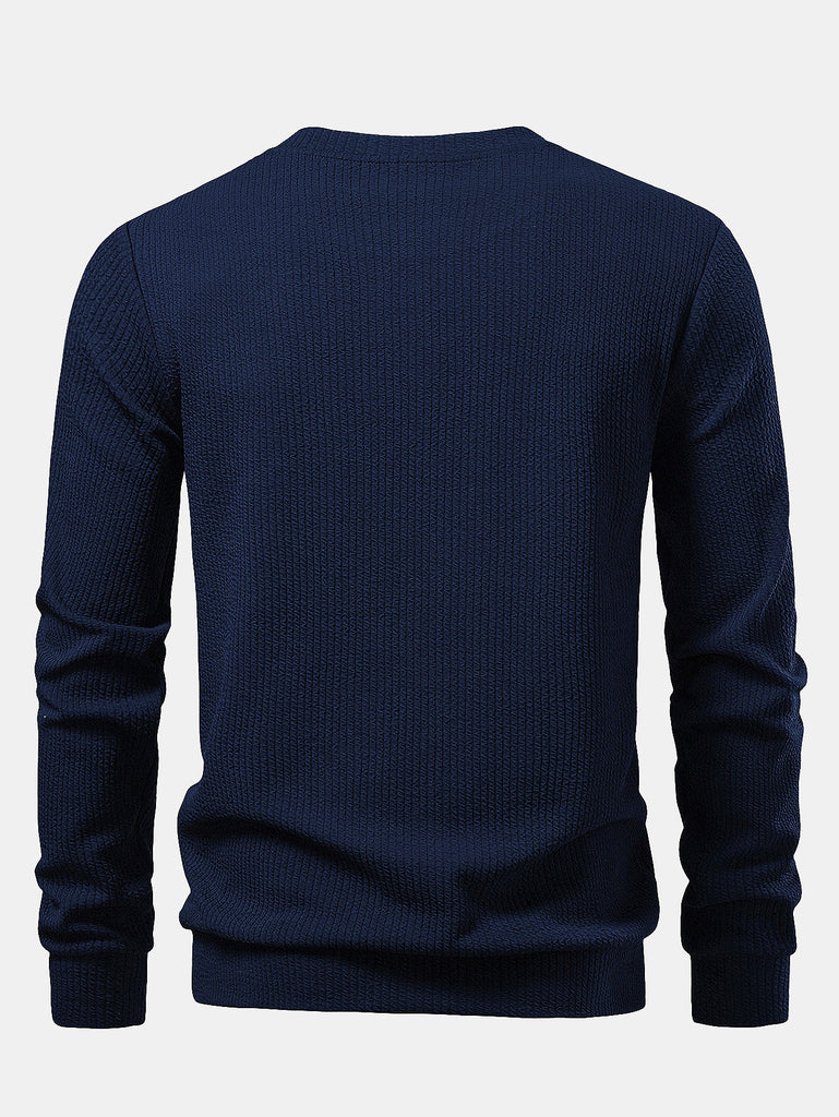 Upgrade your casual wardrobe with this stylish textured crew neck sweatshirt. Crafted from soft, high-quality fabric, it features a unique textured pattern that adds dimension and a subtle touch of sophistication to your everyday look.