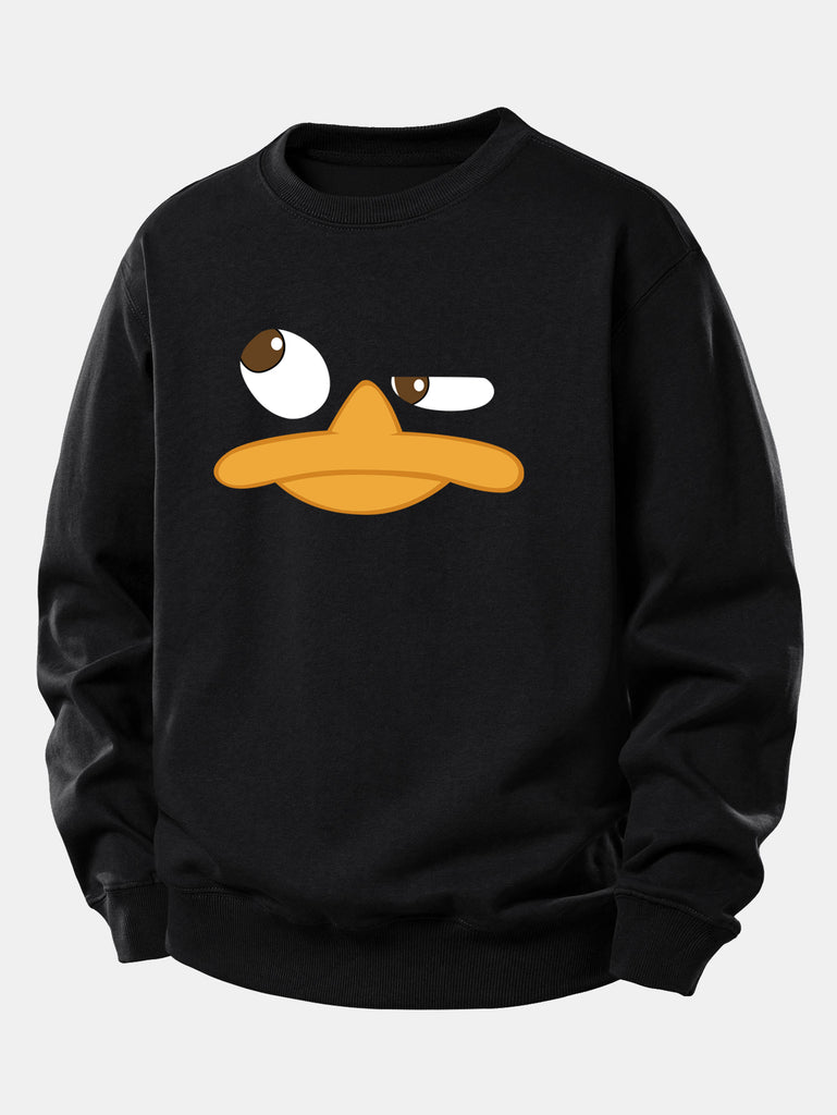 Ghost Drinking Coffee Print Teddy Fleece Lined Sweatshirt